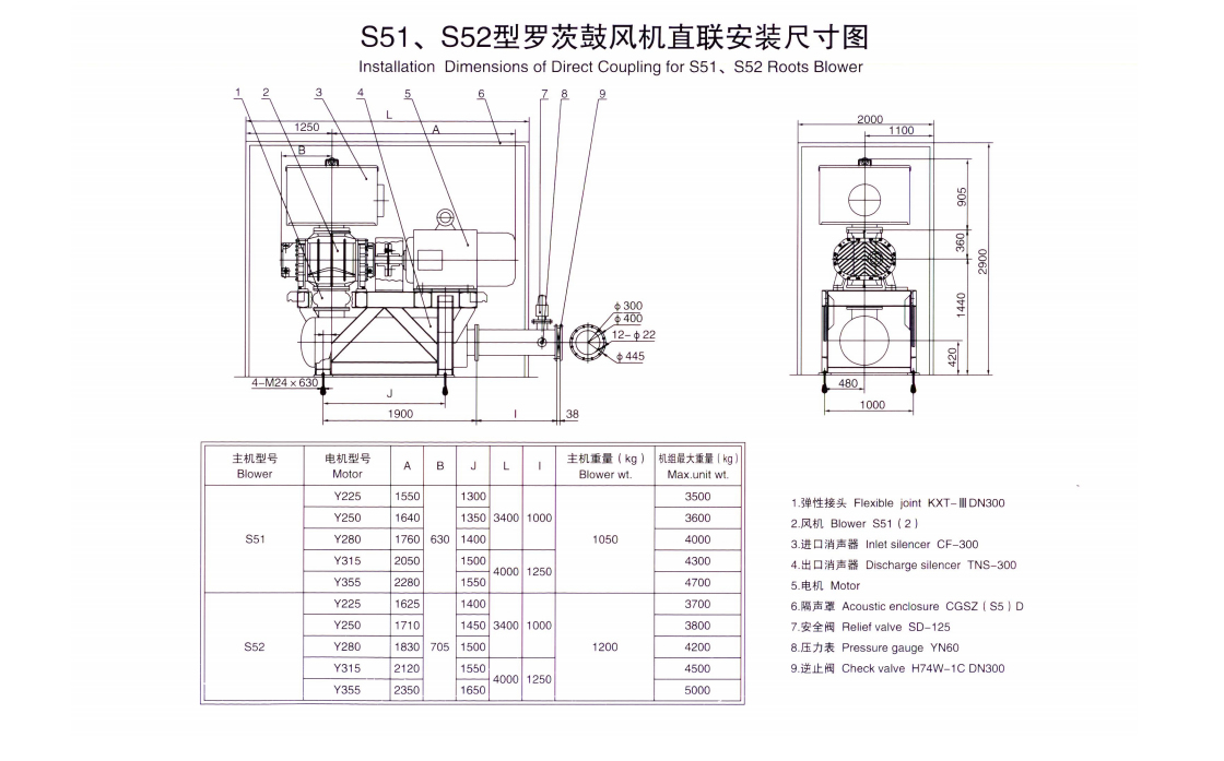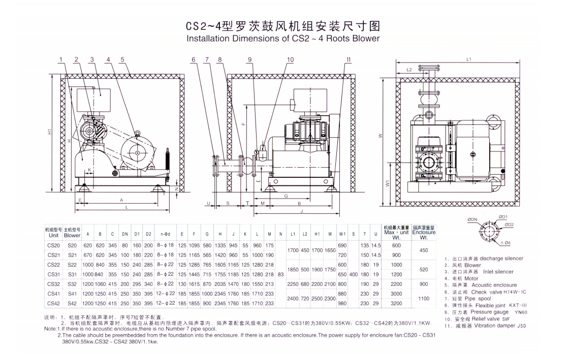 | S系列罗茨鼓风机性能表 Performance Table of Series S Roots Blowers | ||||||||||||||||||||||||||||||
