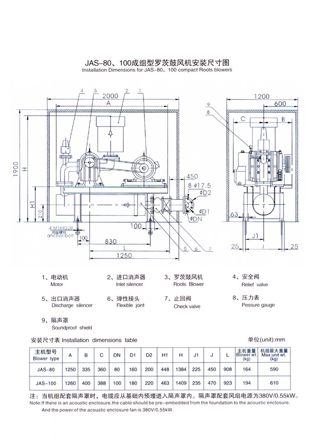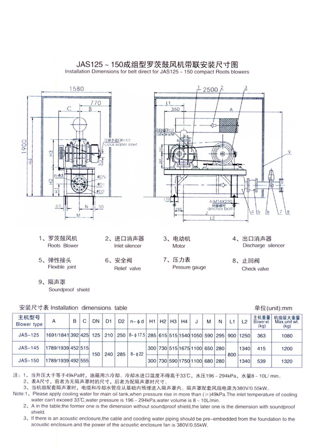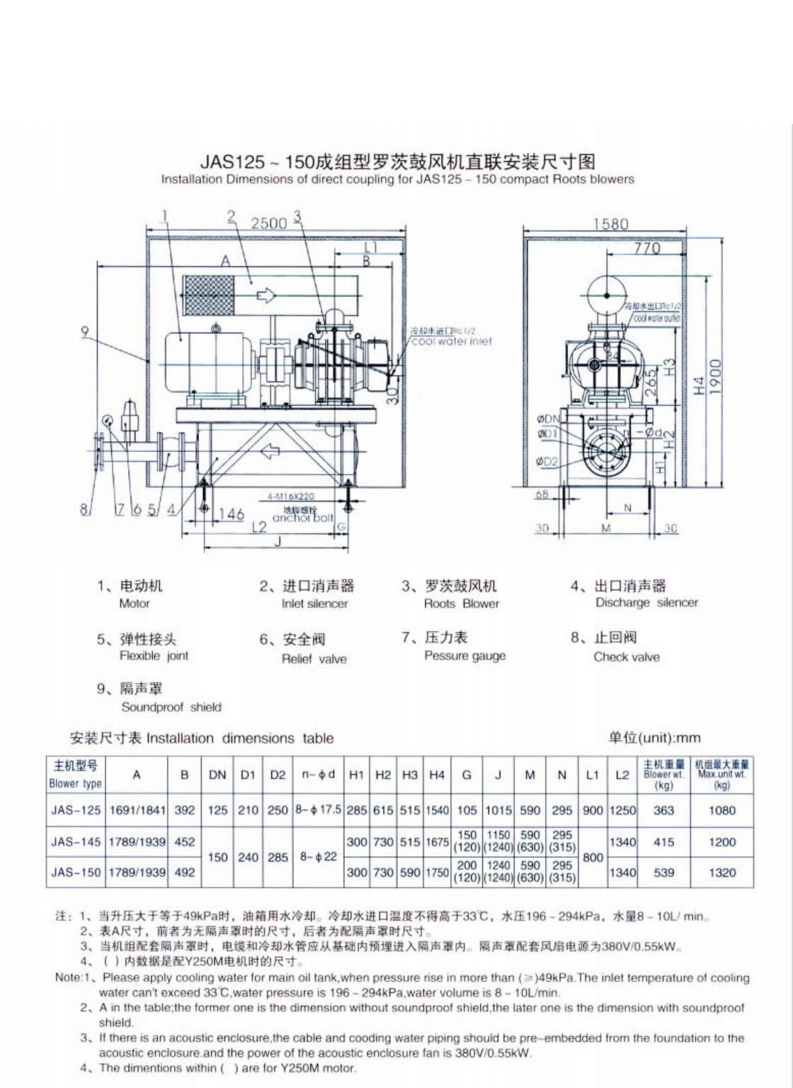 | JAS系列罗茨鼓风机性能表 Performance table of Series JAS Roots Blowers 表1 | |||||||||||||||||||||||||||||||||